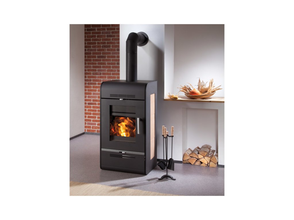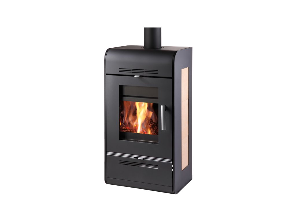 Czarny piec kominkowy z wydajnym wymiennikiem ciepła i beżowymi kaflami po bokach, HAAS+SOHN, ANDRUSParametry dodatkowe