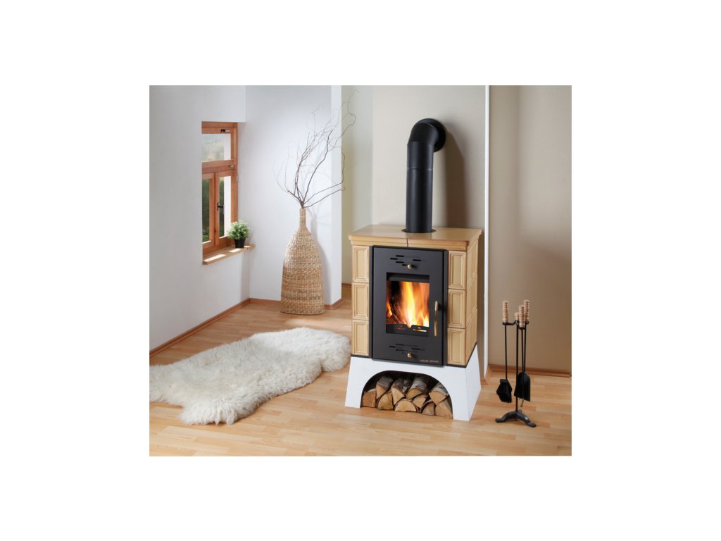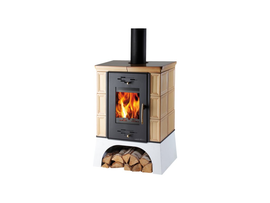 Piec kaflowy z gładkimi beżowymi kaflami, HAAS+SOHN, EBOLIParametry dodatkowe
