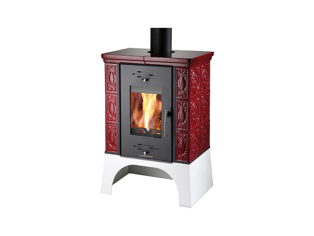 Piec kaflowy z kaflami w kolorze bordowym z wzorem, HAAS+SOHN, EMPOLIParametry dodatkowe
