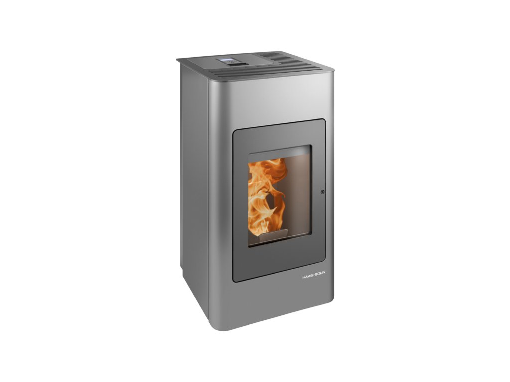 Szary piec na pellet z czarnymi drzwiczkami i dużym przeszkleniem, HAAS+SOHN, HSP 1.17 IIParametry dodatkowe