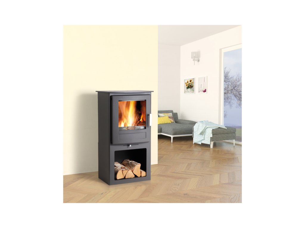 Czarny piec kominkowy w stylu skandynawskim z komorą na drewno, HAAS+SOHN, LEVANGERParametry dodatkowe