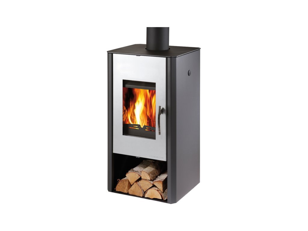 Wąski kwadratowy wkład kominkowy w kolorze antracytowym ze srebrnymi akcesoriami i wymiennikiem ciepła, HAAS+SOHN, MANTOVA II ALParametry dodatkowe